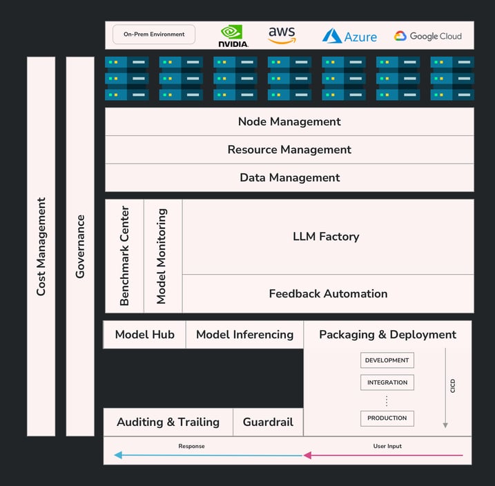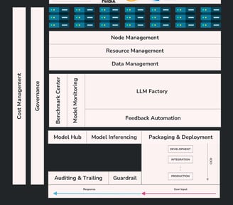 Our solution is a multi-faceted LLMOps platform that helps developers with data acquisition and preparation, utilizes different modalities for model training (RAG, Prompt Engineering, Fine-Tuning, Full Training), evaluates performance, automates model inference, and integrates the LLM solution into products through systematic CI/CD.